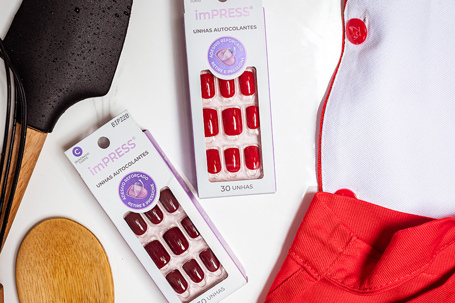 A empresa tem várias linhas de unhas e a que eu mais gosto é a ImPress. É bom prestar atenção na hora de comprar porque nem todas as linhas são autocolantes.